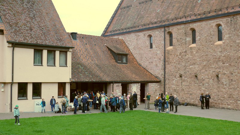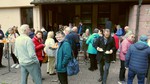 Pünktlich und in voller Besetzung angekommen, nutzte der Chor die Zeit vor dem Gottesdienst bereits für ein spontanes Einsingen außerhalb der Kirche, da die Türen der Münsterkirche noch verschlossen waren.