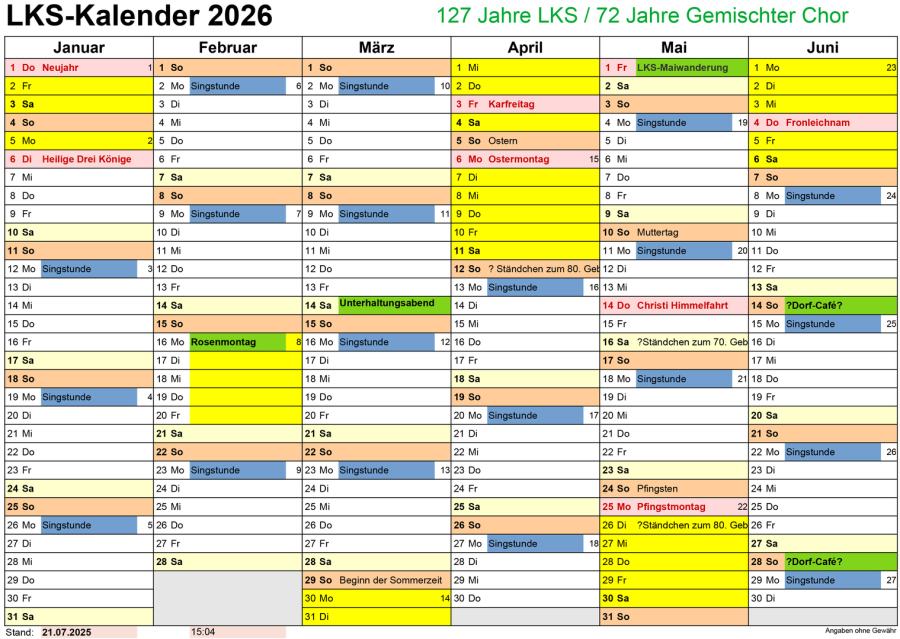 Neues: Siehe Link 20260314 Unterhaltungsabend